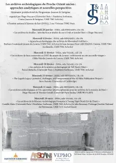 Programme du séminaire post-doctoral Archives archéologique du Proche-Orient ancien
