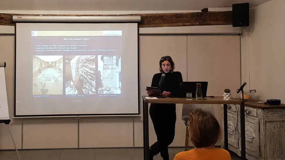 Gaëlle Tallet, directrice du Centre Jaussen et Savignac, a introduit ces journées en rappelant les raisons d’être du programme franco-saoudien Jaussen & Savignac issu d’un accord de coopération entre l’université Paris 1 Panthéon-Sorbonne et The Royal Commission for AlUla. Elle a rappelé les enjeux de cette session centrée sur la recherche en archéologie et la conservation préventive : établir des liens entre les générations de chercheurs et d’étudiants, mais aussi proposer un laboratoire d’idées afin d’affiner les thématiques de recherche de ce programme et offrir également la définition des contours de projets de recherches à venir.